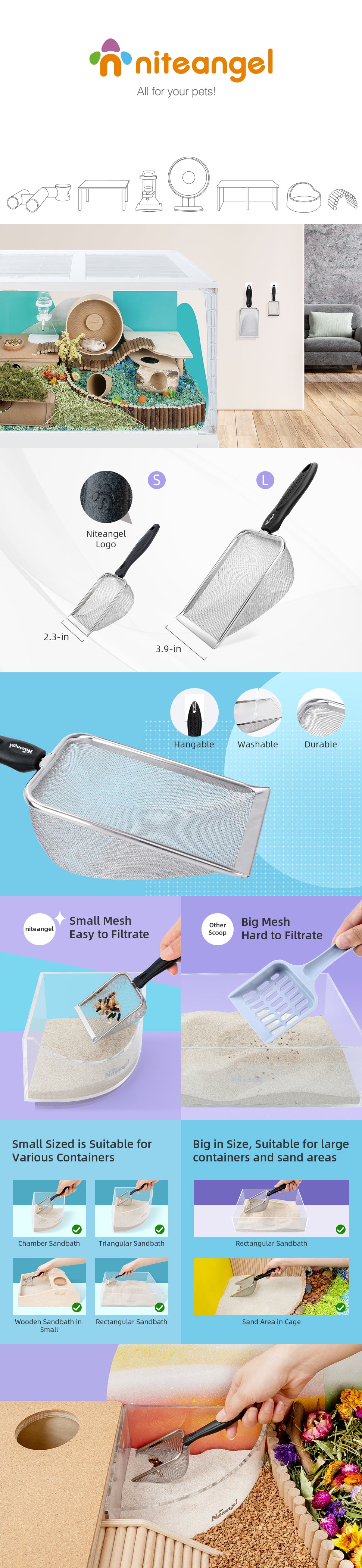 Niteangel Hamsterbad-Sandschaufel – Edelstahl-Sandstreuschaufel mit feinem Sieb, geeignet für Sandbadeboxen für Kleintiere