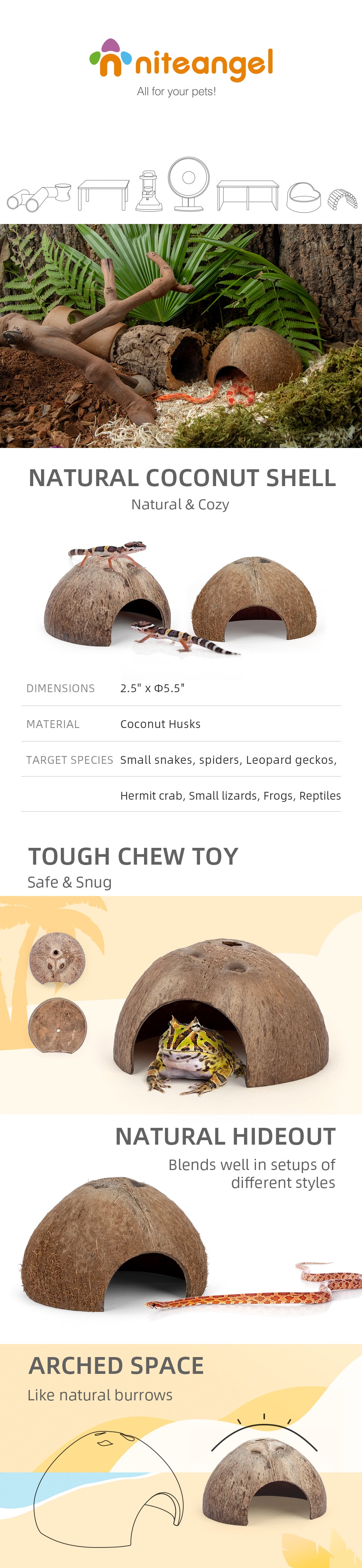Niteangel 2 Pack Natural Coconut Reptile Hideouts, Lizard, Spider and Aquarium Fish Hide Cave (Smooth Surface)