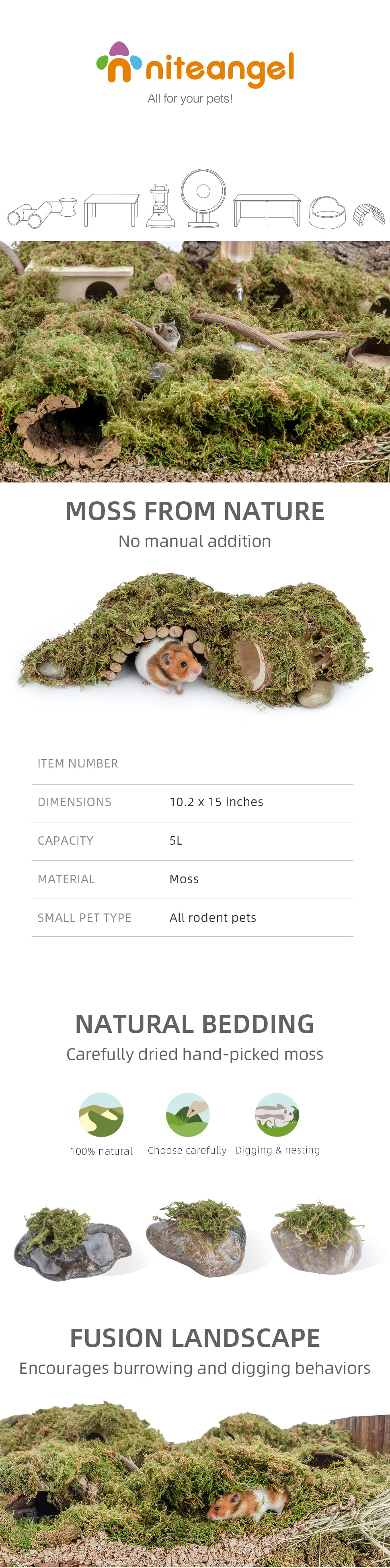 Niteangel 5L Forest Moss Soft Natural Moss Bedding Nesting for Dwarf Syrian Hamsters, Gerbils, mices, Degus or Other Small Animal