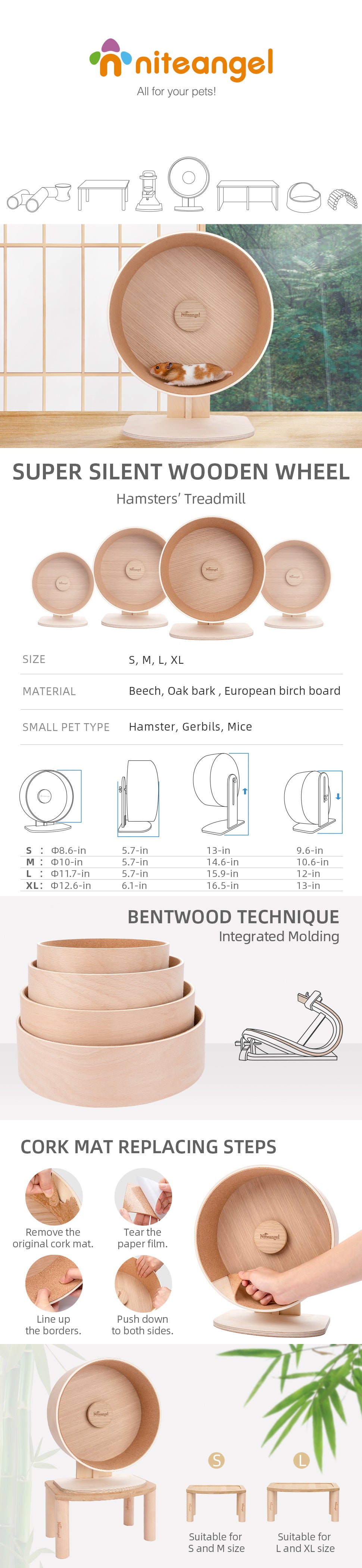 - Pet-Safe Material & Sturdy & Gnawing-resistant - The cork running track is continuous to prevent cracks or tripping. The soft surface of the cork track provides a paw-friendly experience when running. Made from Oak & Poplar wood, which are durable and gnawing-resistant as well